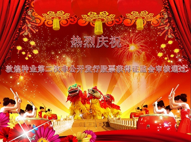 熱烈慶祝敦煌種業(yè)第二次非公開發(fā)行股票獲得證監(jiān)會審核通過